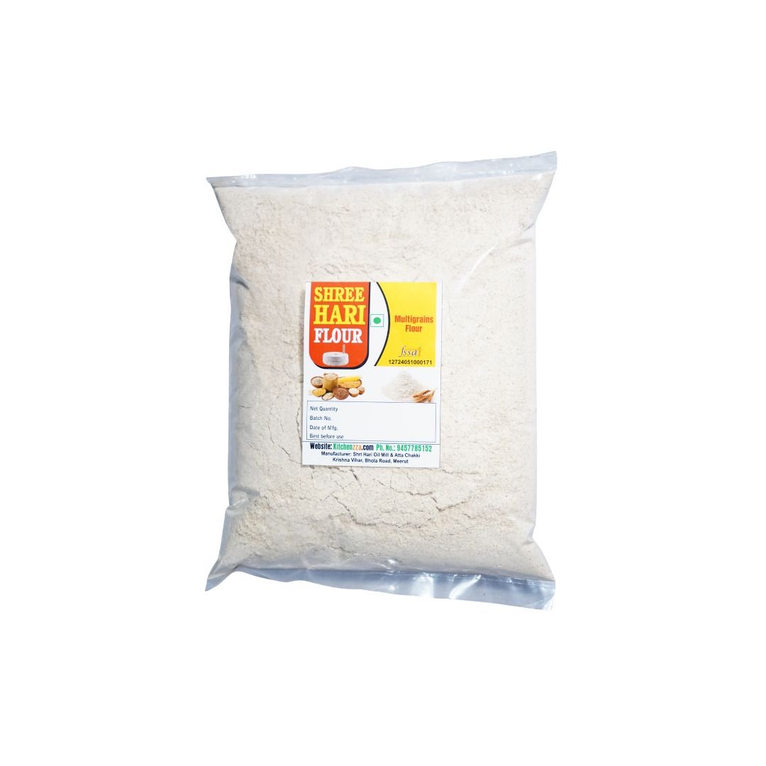 Kitchenzza Multigrain Flour is a carefully balanced blend of multiple wholesome grains such as wheat, barley, jowar, bajra, maize, and ragi. This combination provides better nutrition than regular atta and supports a healthy lifestyle.